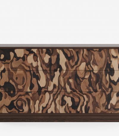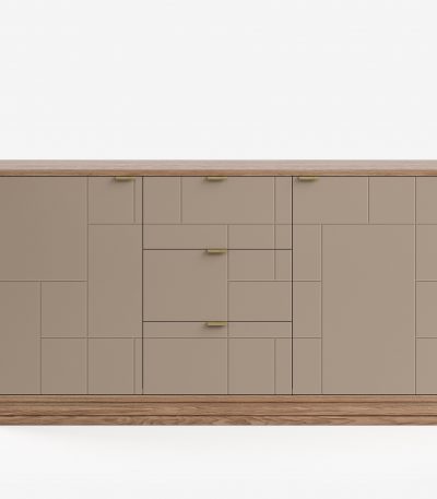 Вместительный комод на цоколе с тремя секциями и шестью полками для организации хранения. Монолитная форма и выверенная геометрия комода ML034 скроет домашние вещи от лишних глаз и оставит в центре внимания фасады с объемной гравировкой. Крышка комода может быть покрыта эмалью в цвет корпуса или шпоном дуба в цвет цоколя – эта деталь придает комоду завершенный и гармоничный вид.