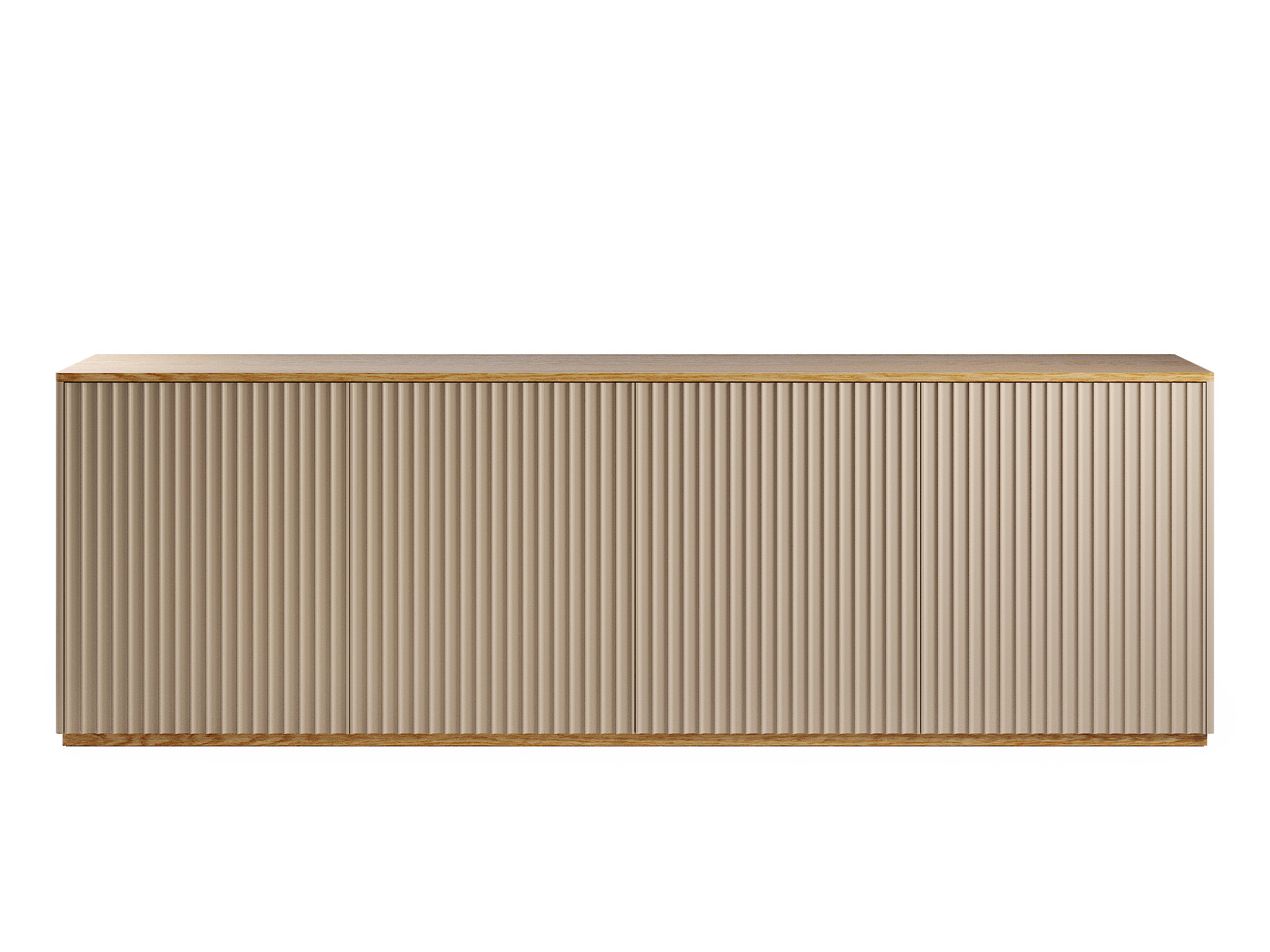 Модель для тех, кто ценит продуманную организацию и безупречную эстетику. Глубокая вертикальная фрезеровка на фасадах создает динамичную игру света и тени, а система push-to-open позволяет открывать дверцы и ящики легким нажатием. Универсальная конструкция сочетает разные форматы хранения, идеально подходя для спальни, прихожей или гостиной. Комод на цоколе из массива дуба,
