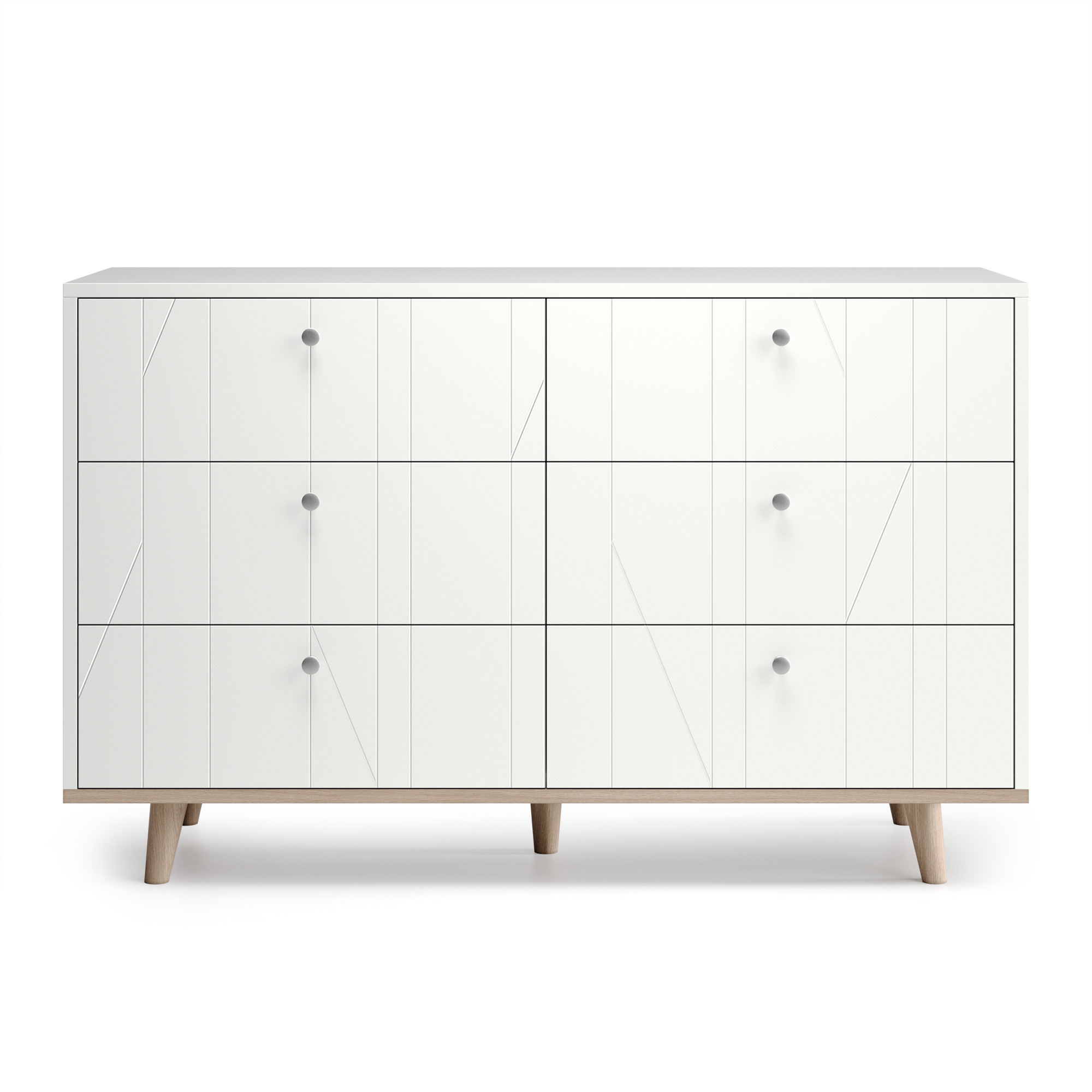 Идеальная организация пространства и элегантный акцент в интерьере. Шесть вместительных ящиков из прочного ЛДСП выдерживают нагрузку до 25 кг каждый, позволяя разместить даже объемные вещи. Продуманные габариты и регулируемая система хранения помогают использовать каждый сантиметр эффективно. Лаконичный дизайн с объемной гравировкой фасадов, натуральный шпон дуба на основании и ножки из массива дуба подчеркивают стиль mid-century. Европейская фурнитура обеспечивает плавное и бесшумное закрывание. Выберите исполнение из более чем 2500 вариантов отделки для гармоничного дополнения вашего пространства.