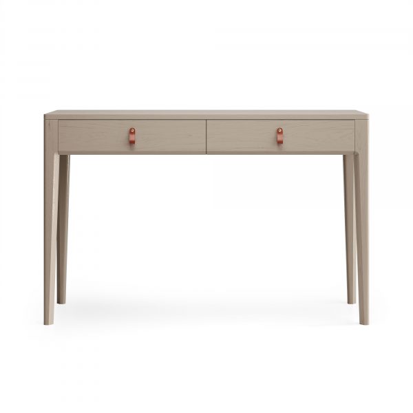 Идеален в качестве туалетного или учебного столика, а также для зонирования прихожей. Компактная глубина (40-50 см) позволяет разместить его даже в самом узком помещении, не загромождая пространство. Утонченный дизайн с фрезеровкой ножек и ручками из натуральной кожи делает его изысканной деталью интерьера.