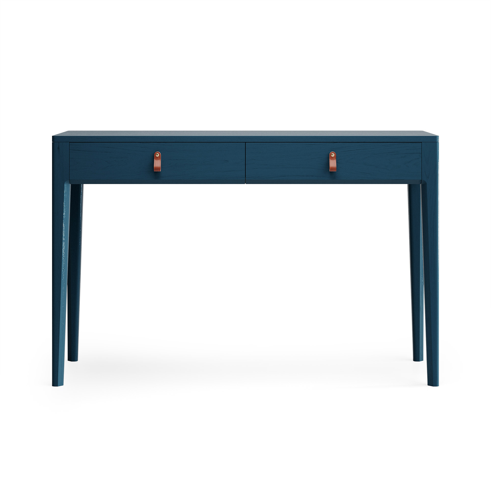 Идеален в качестве туалетного или учебного столика, а также для зонирования прихожей. Компактная глубина (40-50 см) позволяет разместить его даже в самом узком помещении, не загромождая пространство. Утонченный дизайн с фрезеровкой ножек и ручками из натуральной кожи делает его изысканной деталью интерьера.