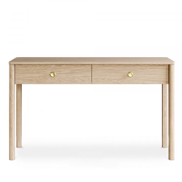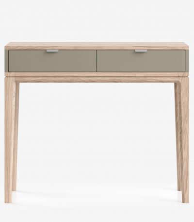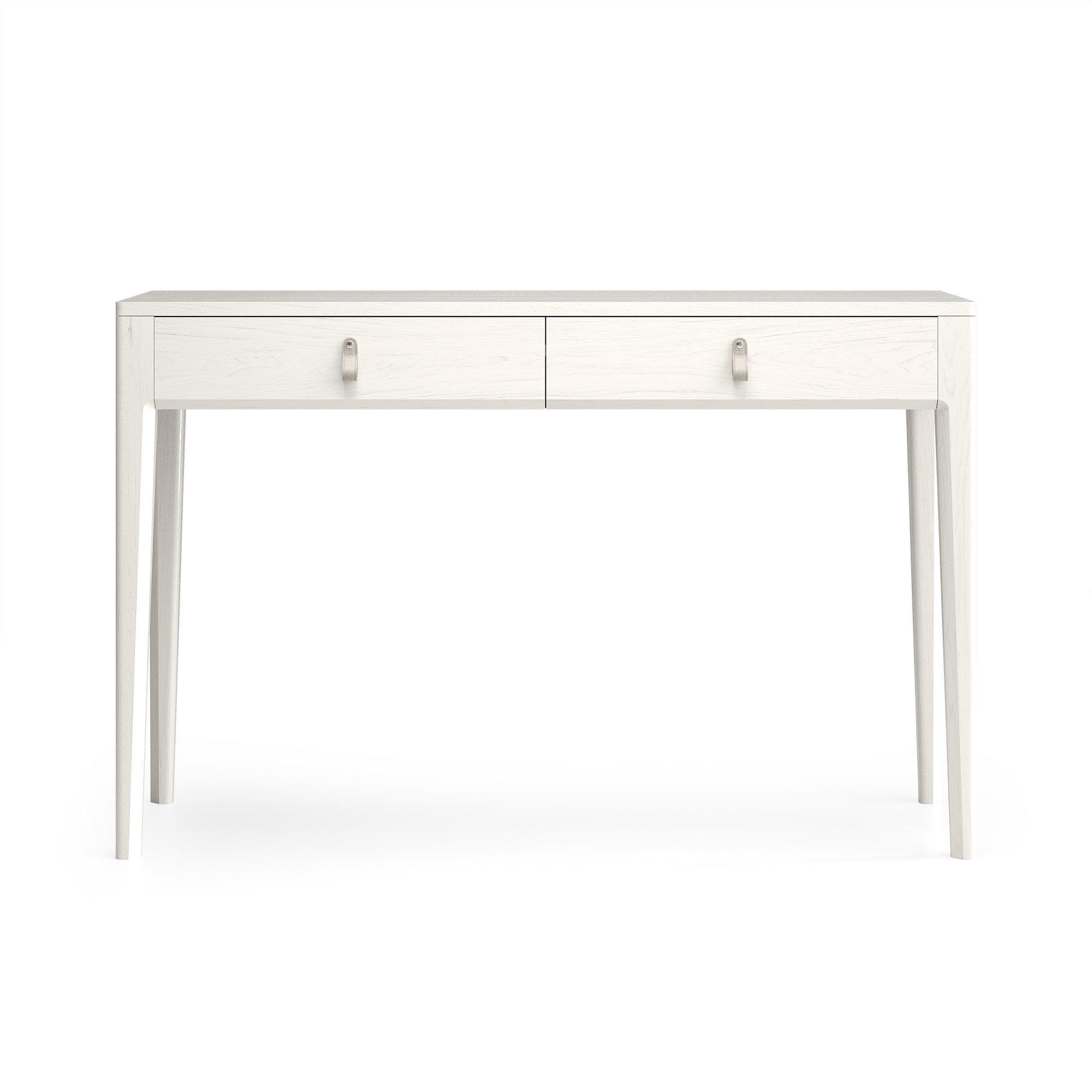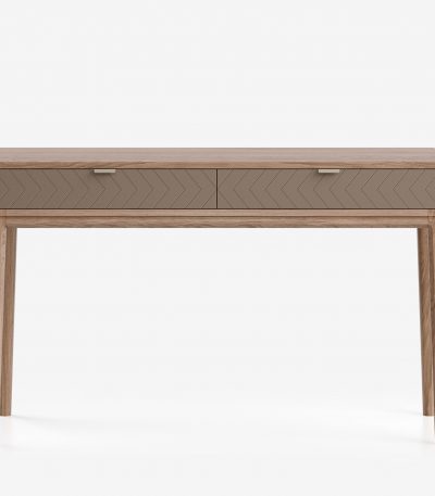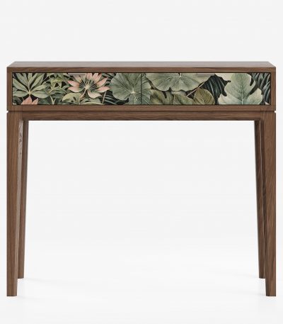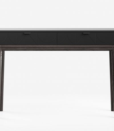 Идеален в качестве туалетного или учебного столика, а также для зонирования прихожей. Компактная глубина (40-50 см) позволяет разместить его даже в самом узком помещении, не загромождая пространство. Утонченный дизайн с фрезеровкой ножек и ручками из натуральной кожи делает его изысканной деталью интерьера.