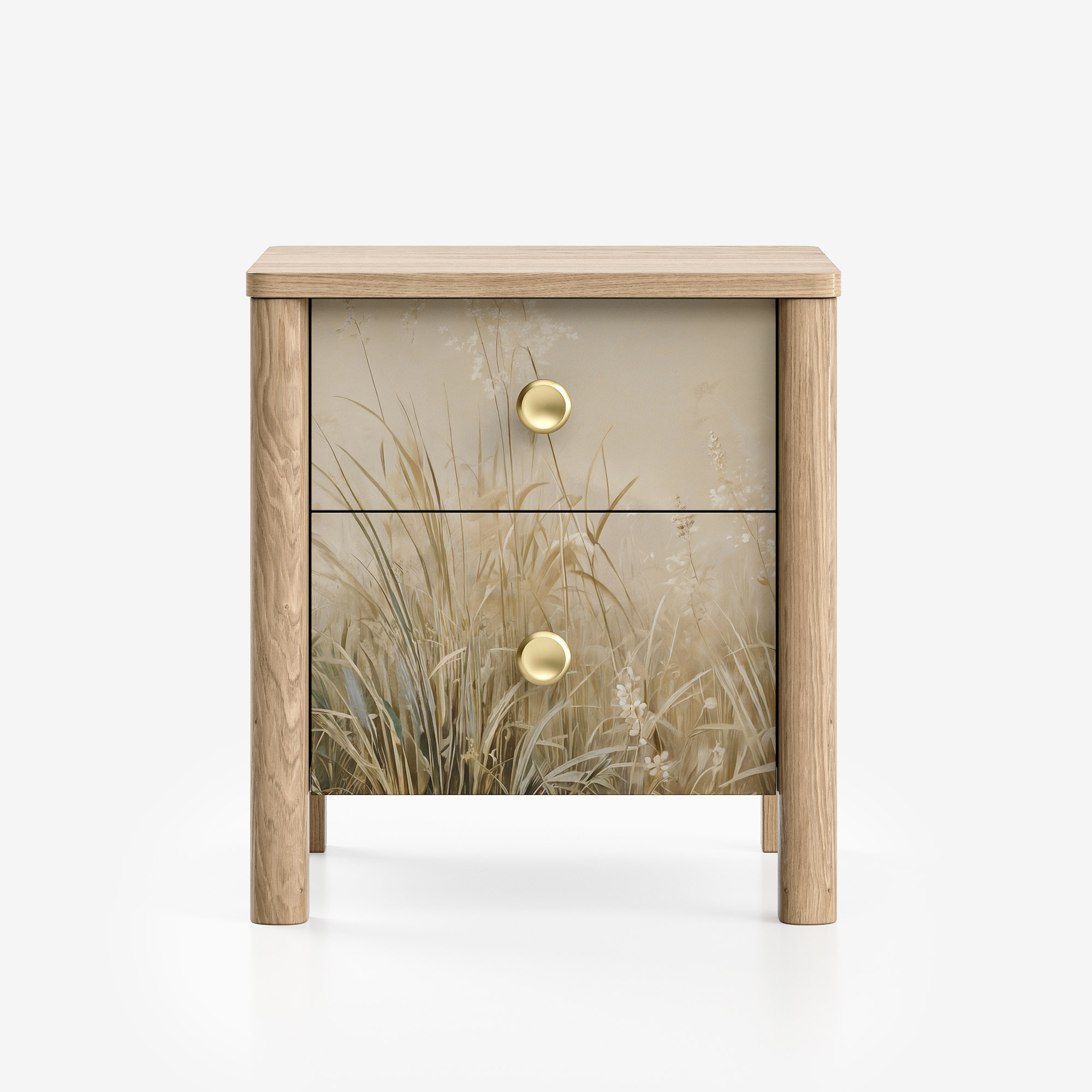 Уникальное сочетание скандинавской эстетики mid-century и цифрового искусства. Теплая текстура тонированного дуба, плавные каплевидные ножки и эксклюзивные принты из коллекции INSPIRE создают предмет мебели, который является самостоятельным арт-объектом. Это больше, чем тумба — это визуальное заявление, наполняющее пространство характером и глубиной.
