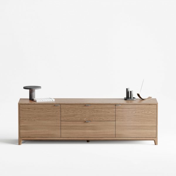 Эксклюзивные детали: массивные ручки-кнопки в четырех исполнениях и многогранные ножки и цоколь из массива дуба, обработанные вручную.
