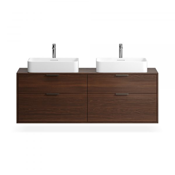 Компактные модели подвесных тумб с четырьмя выдвижными ящиками гармонично сочетаются с линейкой накладных раковин большинства производителей.
