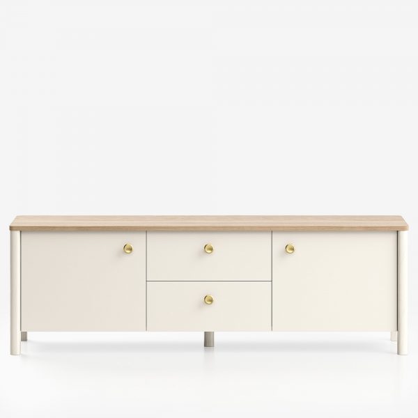 Тумба под ТВ BG075, в которой узнаваемые черты скандинавского mid-century встречаются с японской сдержанностью. Строгая симметрия и мягкие каплевидные ножки создают гармоничный образ. Теплая текстура тонированного дуба или сдержанная палитра эмали — выберите отделку, чтобы тумба идеально вписалась в интерьер вашей гостиной.